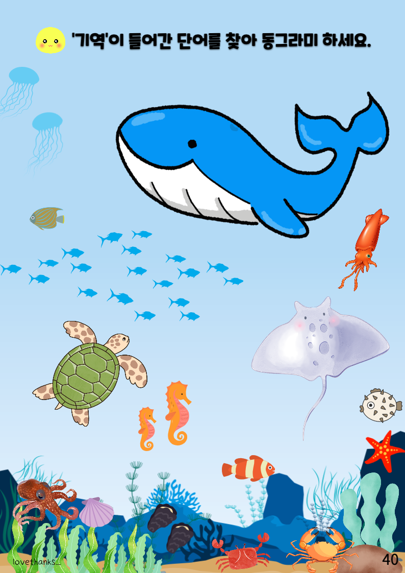 <'ㄱ'이 들어간 단어 찾아 동그라미 하기>