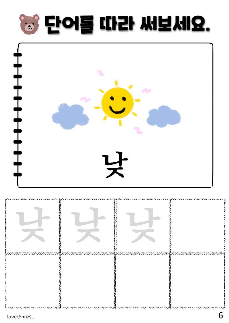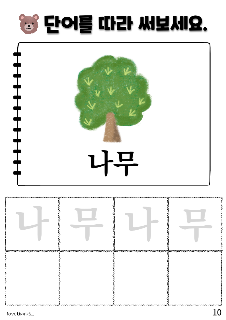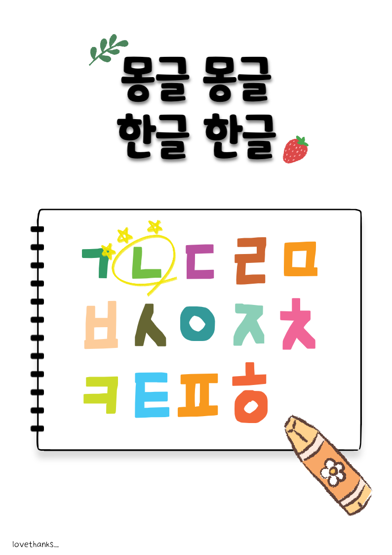 *이 자료의 저작권은 lovethanks_ 블로그에 있습니다.몽글몽글한글한글-ㄴ.pdf11.82MB2023.01.30 - [교육 자료 나눔] - 한글 공부 | 몽글몽글 한글한글 1. 기역 | 학습지 하나로 끝내기
