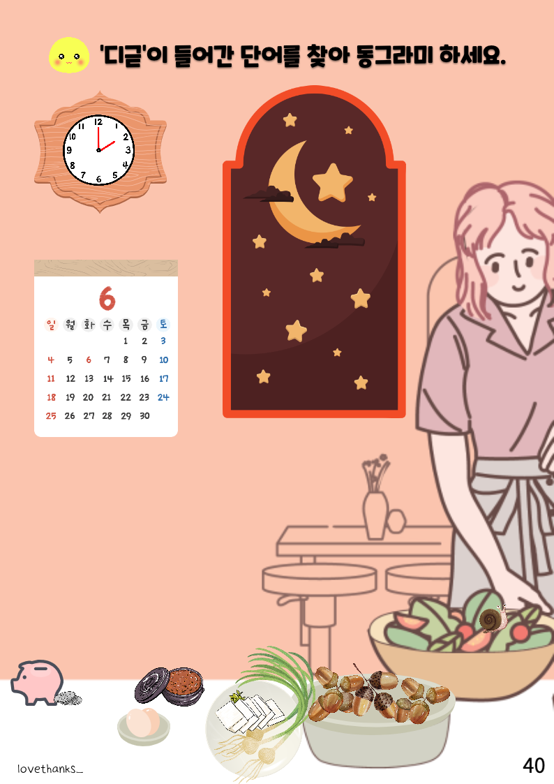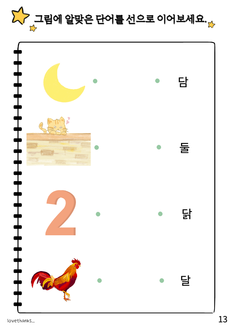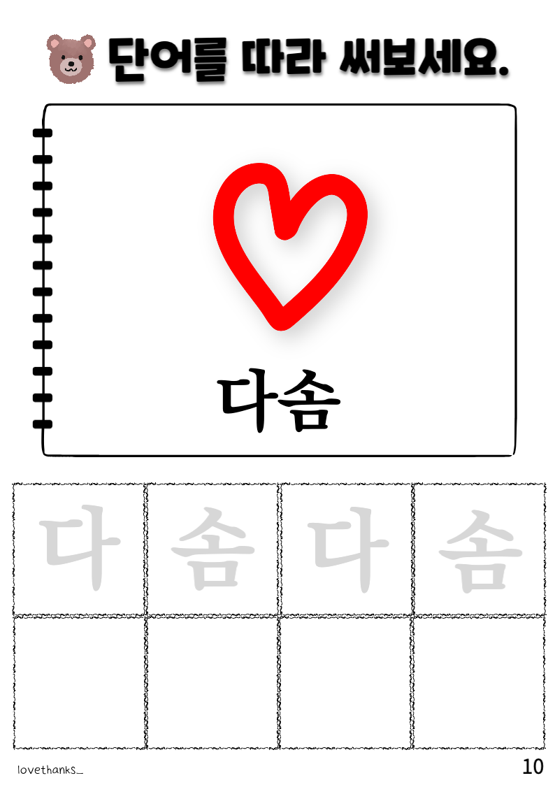 한글 공부이니 만큼 순우리말 낱말도 함께 익혀보면 좋을 것 같아요 :)
