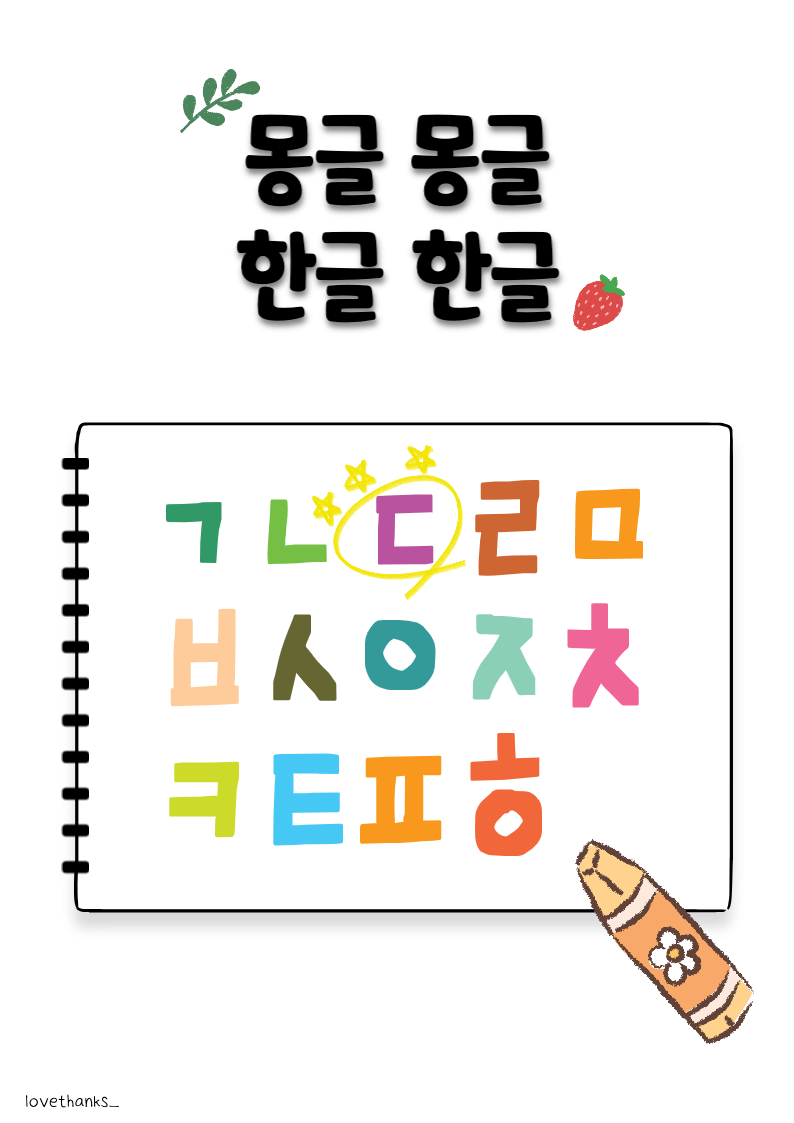 "이 자료의 저작권은 lovethanks_ 블로그에 있습니다."몽글몽글한글한글ㄷ.pdf11.61MB2023.01.30 - [교육 자료 나눔] - 한글 공부 | 몽글몽글 한글한글 1. 기역 | 학습지 하나로 끝내기