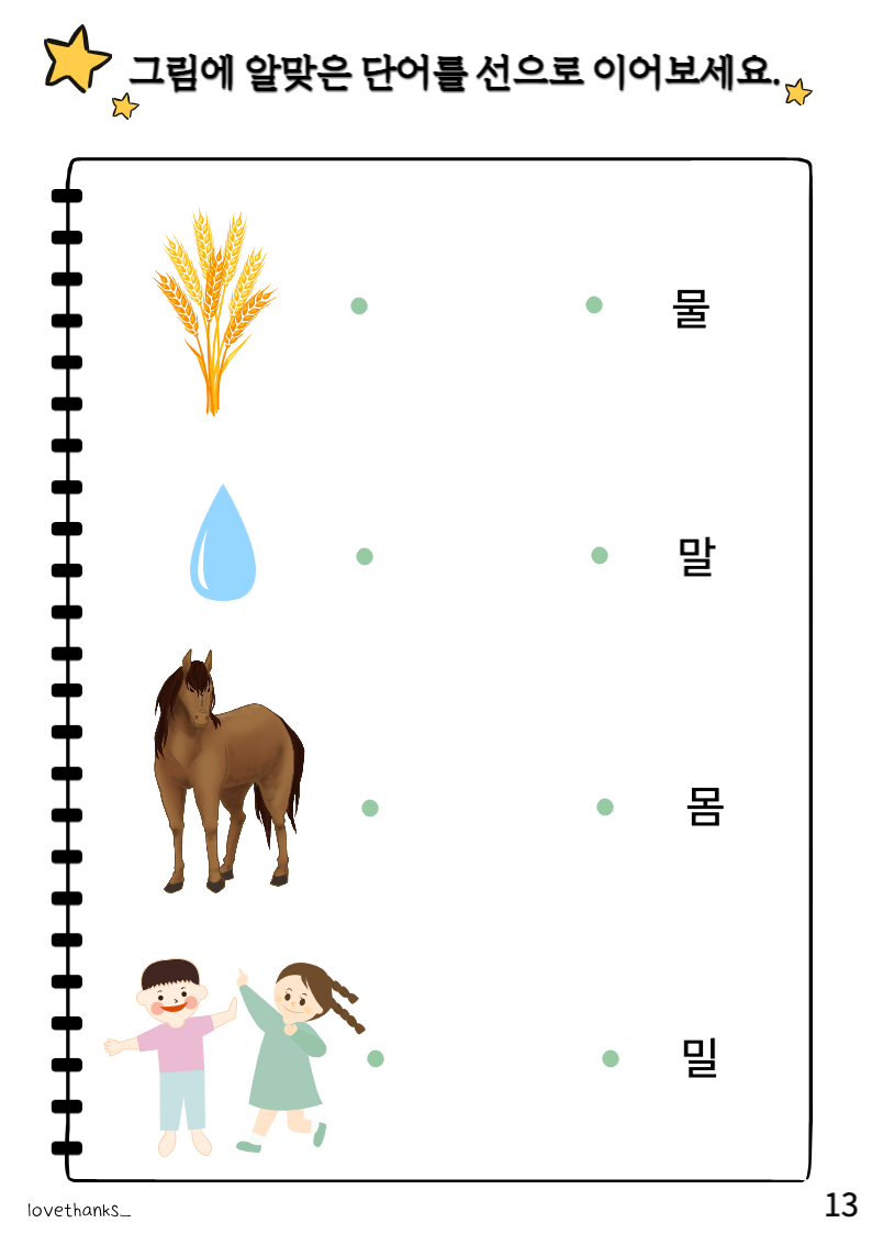 *이 자료의 저작권은 lovethanks_ 블로그에 있습니다.몽글몽글한글한글ㅁ.pdf12.47MB2023.01.30 - [교육 자료 나눔] - 한글 공부 | 몽글몽글 한글한글 1. 기역 | 학습지 하나로 끝내기