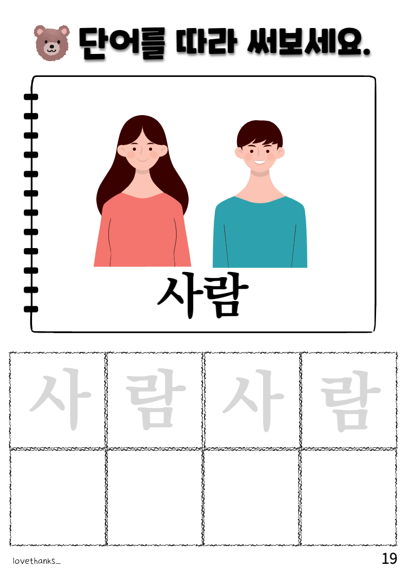 먼저 따라 쓰면서 연습해보고 다 쓴 후에는