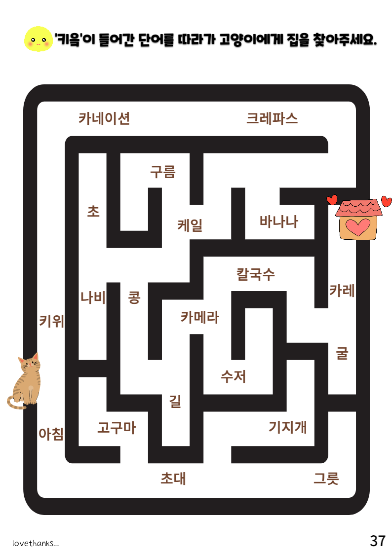 정리 활동 - 'ㅋ'이 들어간 단어를 따라가 미로 찾기 새로운 정리 활동을 넣어보았어요~~