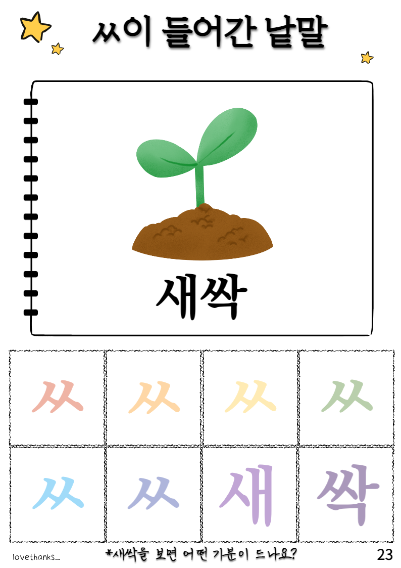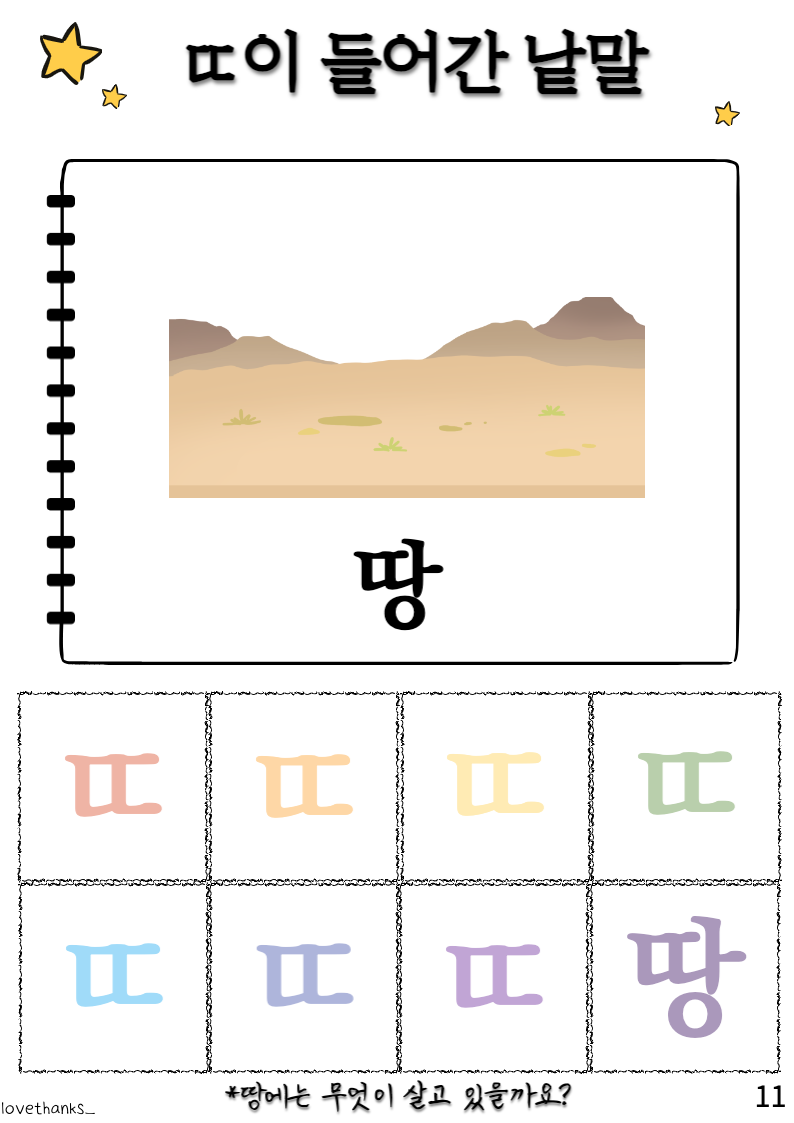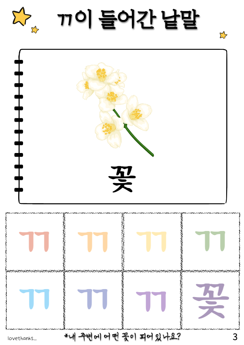 오늘은 한글 자음 마지막 자료인 한글 쌍자음 자료입니다~